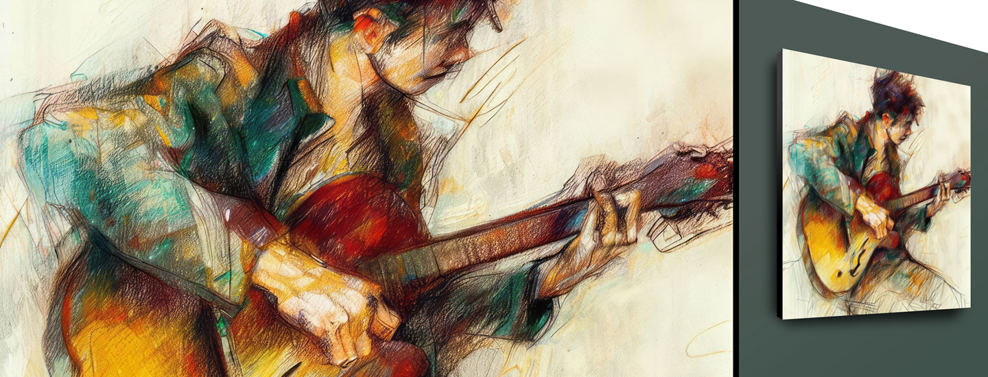 Visit Artistic Rebellion, art that exudes a raw energy with vivid colors, and thought-provoking compositions reflecting the iconic spirit of Jean-Michele Basquiat. Or visit Cities, that blend the conventional and abstract, offering art that embodies the rhythms of our dynamic cities. Or take Piano Lessons and immerse in art that intertwines musical elements with captivating visuals, portraying the beauty of pianos, and the joy of learning. Stay tuned to music with Strings of Tribute, an extraordinary interpretation, celebrating the guitar and the remarkable artists who bring it to life. We invite you to immerse yourself in the universal language of music and art. It's raining - or rather - Dripping Cats & Dogs. A whimsical study inspired by the iconic dripping paint style of Jackson Pollock. Every drop an intricate dance of colors and shapes to mirror the playfulness of our feline and canine companions. Flowers and Forests have the power to ignite your sense of adventure and awaken your appreciation for the beauty that surrounds us.