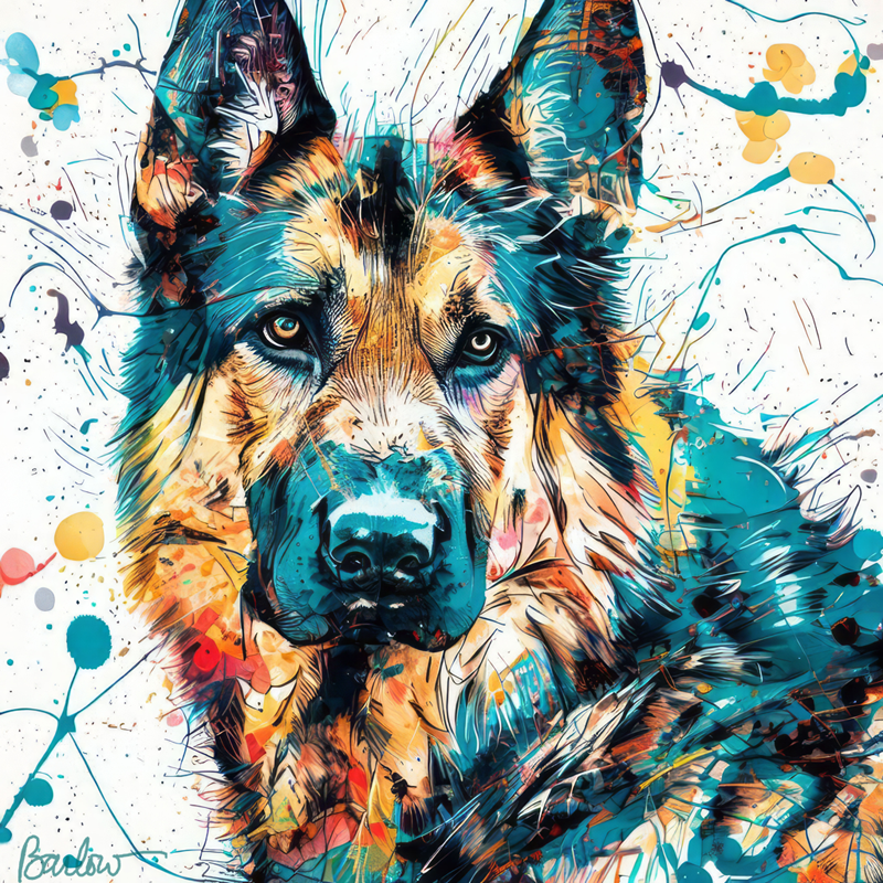 A whimsical and captivating study of cats and dogs, inspired by the iconic dripping paint style of Jackson Pollock. Every drop of paint forms an intricate dance of colors and shapes that mirror the playfulness of our feline and canine companions.