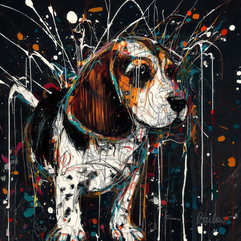 A whimsical and captivating study of cats and dogs, inspired by the iconic dripping paint style of Jackson Pollock. Every drop of paint forms an intricate dance of colors and shapes that mirror the playfulness of our feline and canine companions.