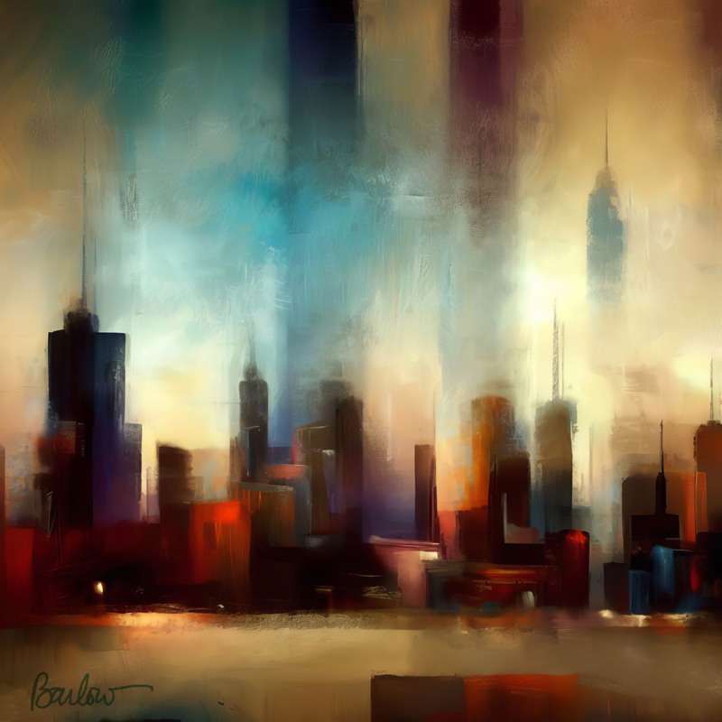 A captivating collection blending conventional and abstract art, offering a fresh interpretation of New York caught in the past and the fog.