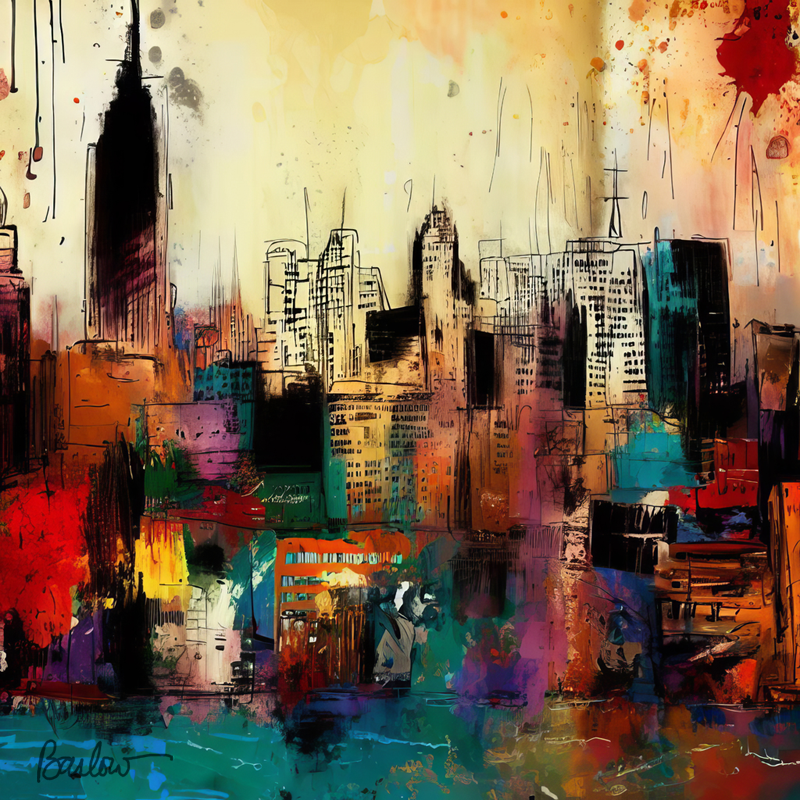 A captivating collection blending conventional and abstract art, offering a fresh interpretation of New York. This art embodies the energy and rhythms of this dynamic city.