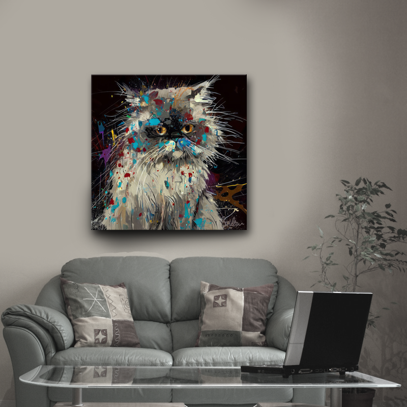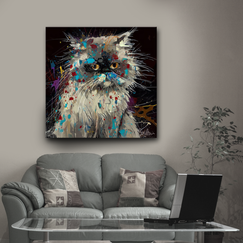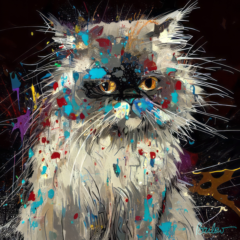 A whimsical and captivating study of cats and dogs, inspired by the iconic dripping paint style of Jackson Pollock. Every drop of paint forms an intricate dance of colors and shapes that mirror the playfulness of our feline and canine companions.