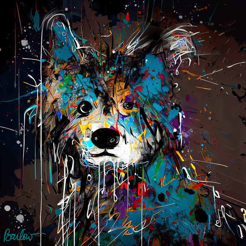 A whimsical and captivating study of cats and dogs, inspired by the iconic dripping paint style of Jackson Pollock. Every drop of paint forms an intricate dance of colors and shapes that mirror the playfulness of our feline and canine companions.