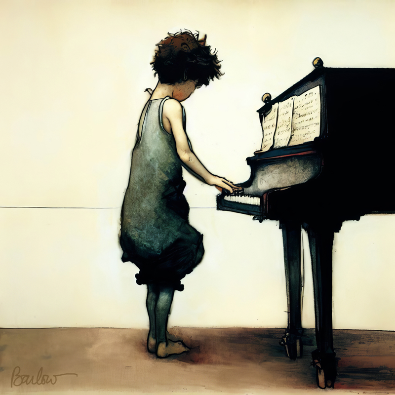 Introducing the world of piano, presented through a captivating blend of conventional and abstract forms. Immerse yourself in this interpretation celebrating the transformative power of the piano and the beauty of the learning process.