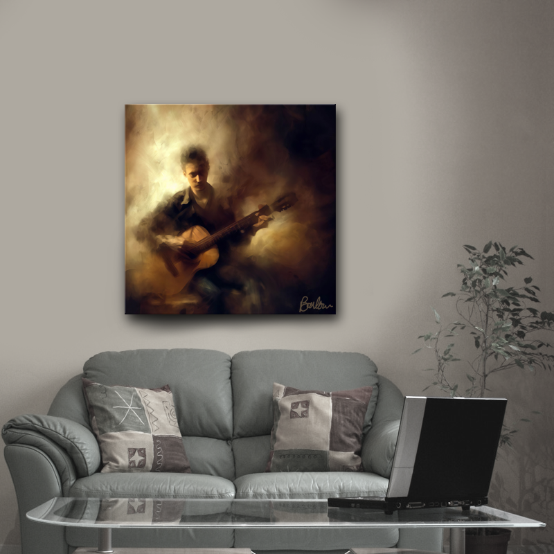 Celebrate the guitar and the remarkable artists who bring it to life. This artwork visualizes the soulful melodies, virtuosity, and emotional journey of guitar music, inviting viewers to immerse themselves in the power and universal language of music and art.
